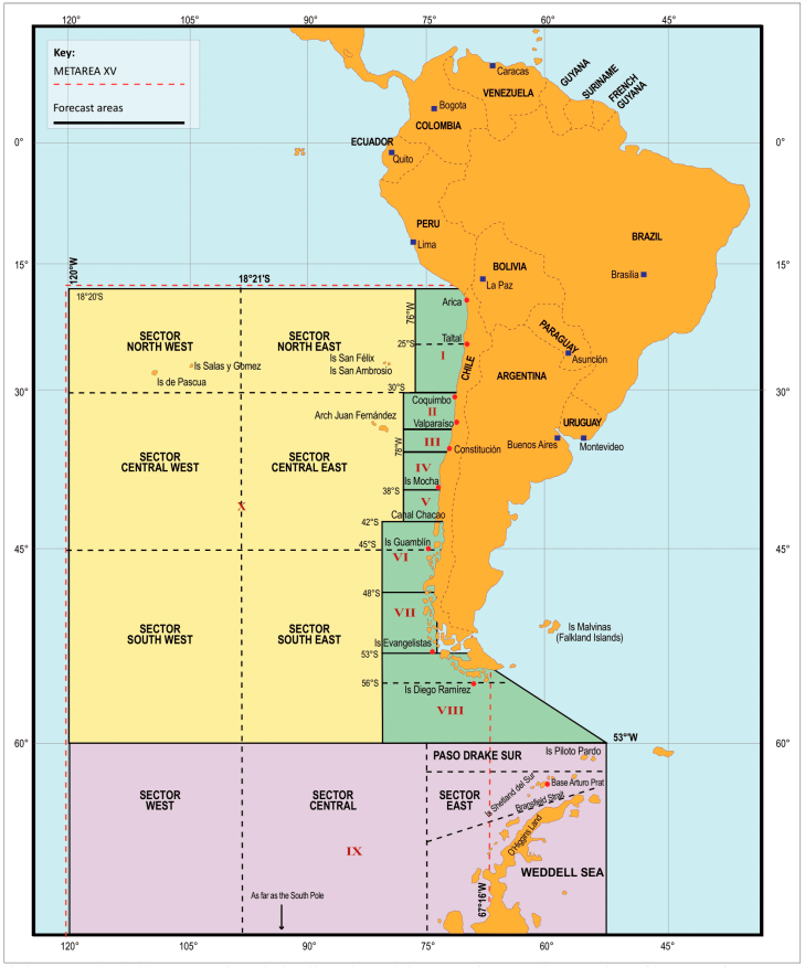 | X | From 18°20'S to 60°S and eastern limits is western limits of Areas 1 to 8 to 120°W |