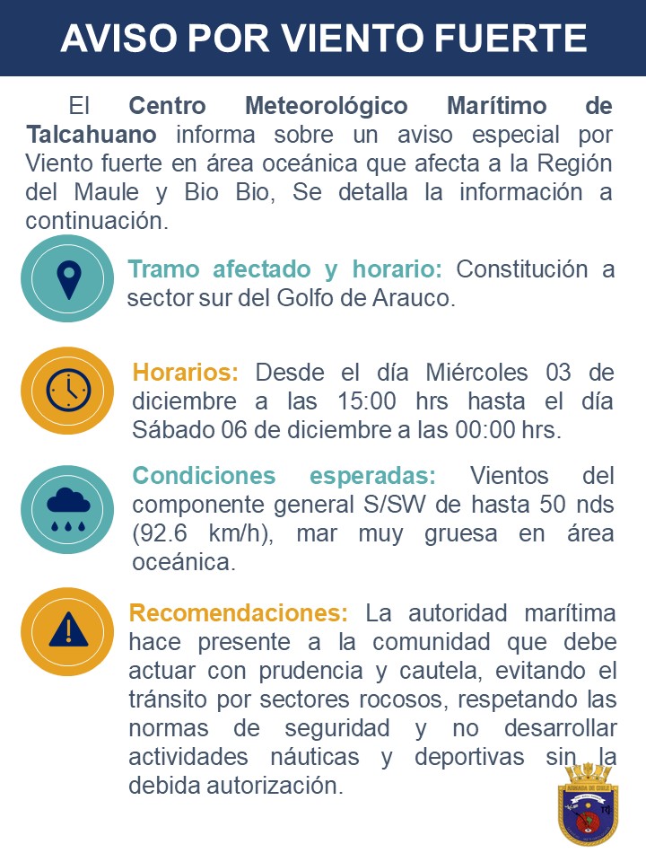 AVISO ESPECIAL POR VIENTO FUERTE EN AREA OCEANICA